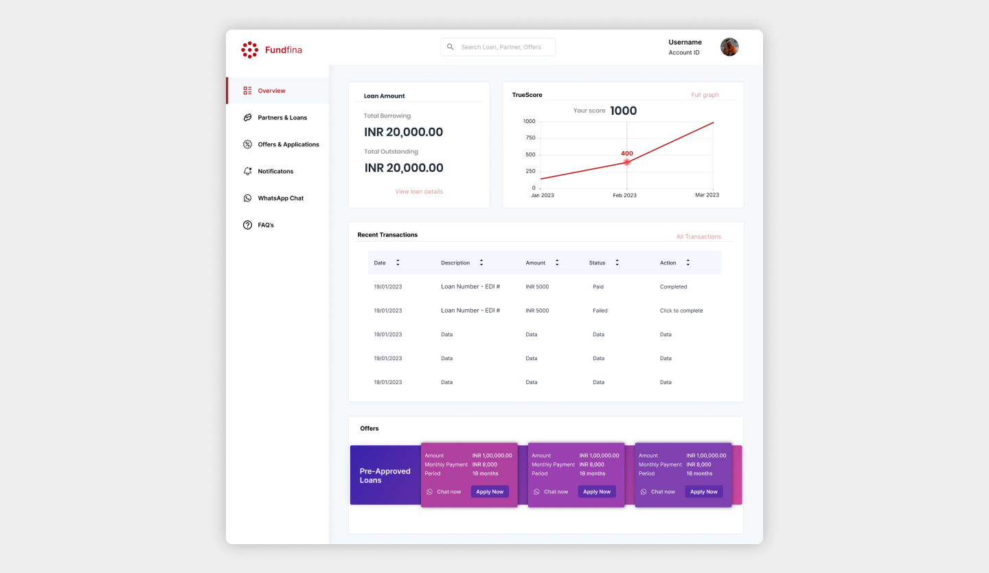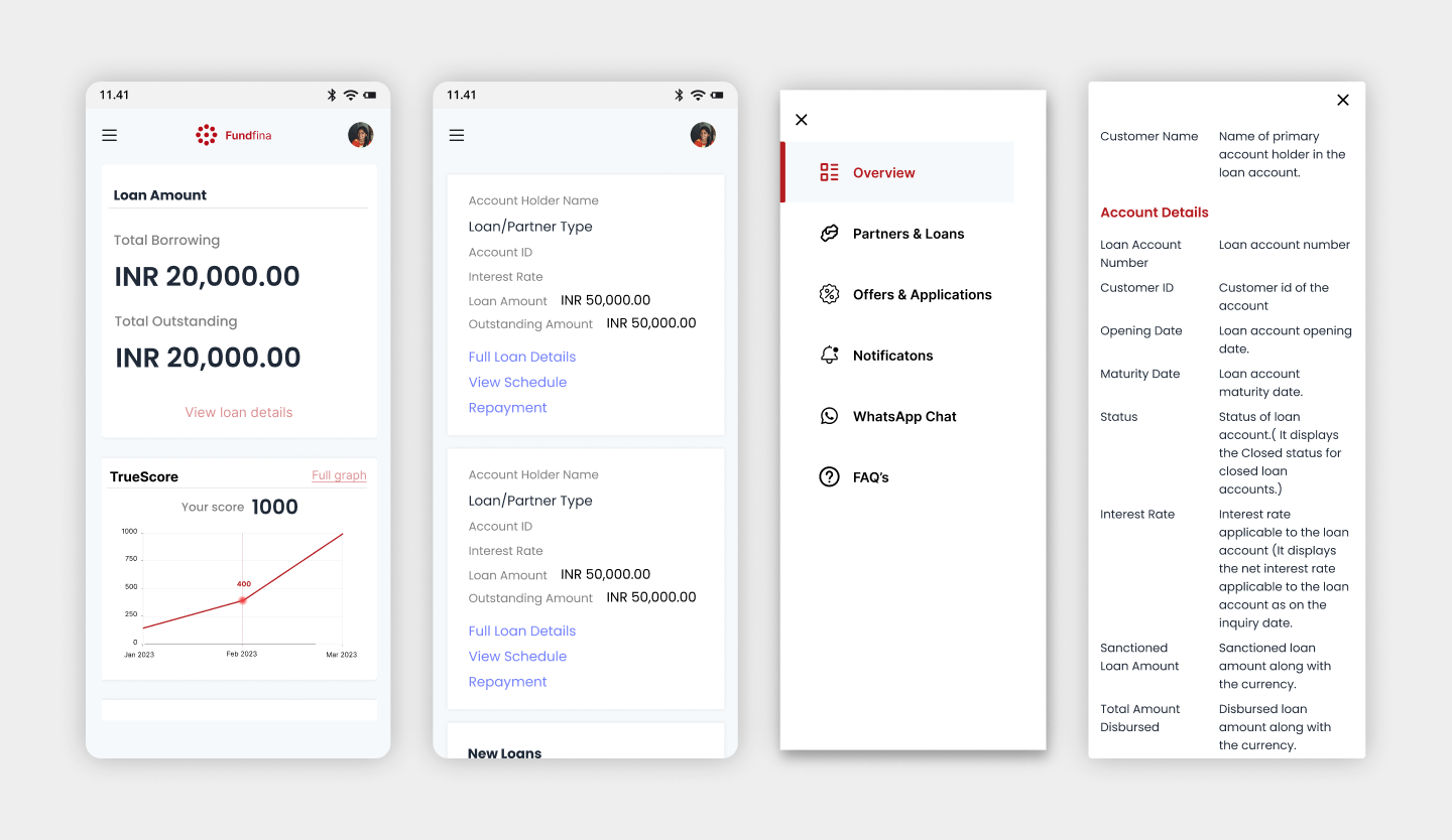 After few rounds of brainstorming, wireframing, and design iterations, we finally arrived at a sleek and user-friendly dashboard design for the web. It was a moment of accomplishment, a design that offered a seamless experience and made loan management a breeze for desktop users.