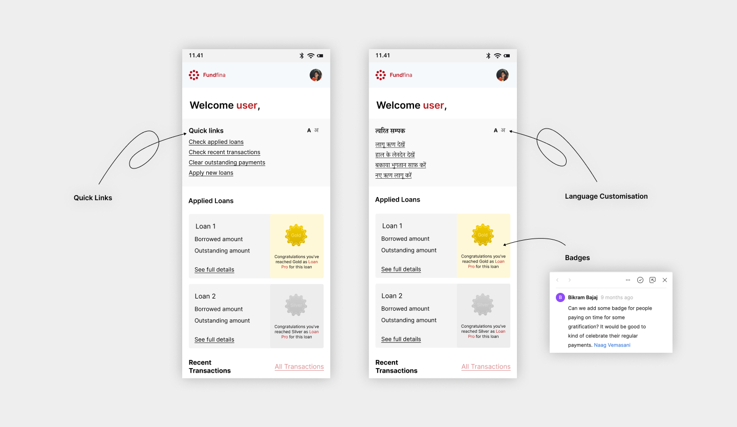 To enhance the user experience, we introduced a "Quick Links" feature, providing users with easy and instant access to their most critical tasks. Users could now swiftly navigate to essential functions, such as viewing loan details, making payments, or checking their payment history. This feature not only streamlined the user journey but also minimised the time required to complete essential tasks.